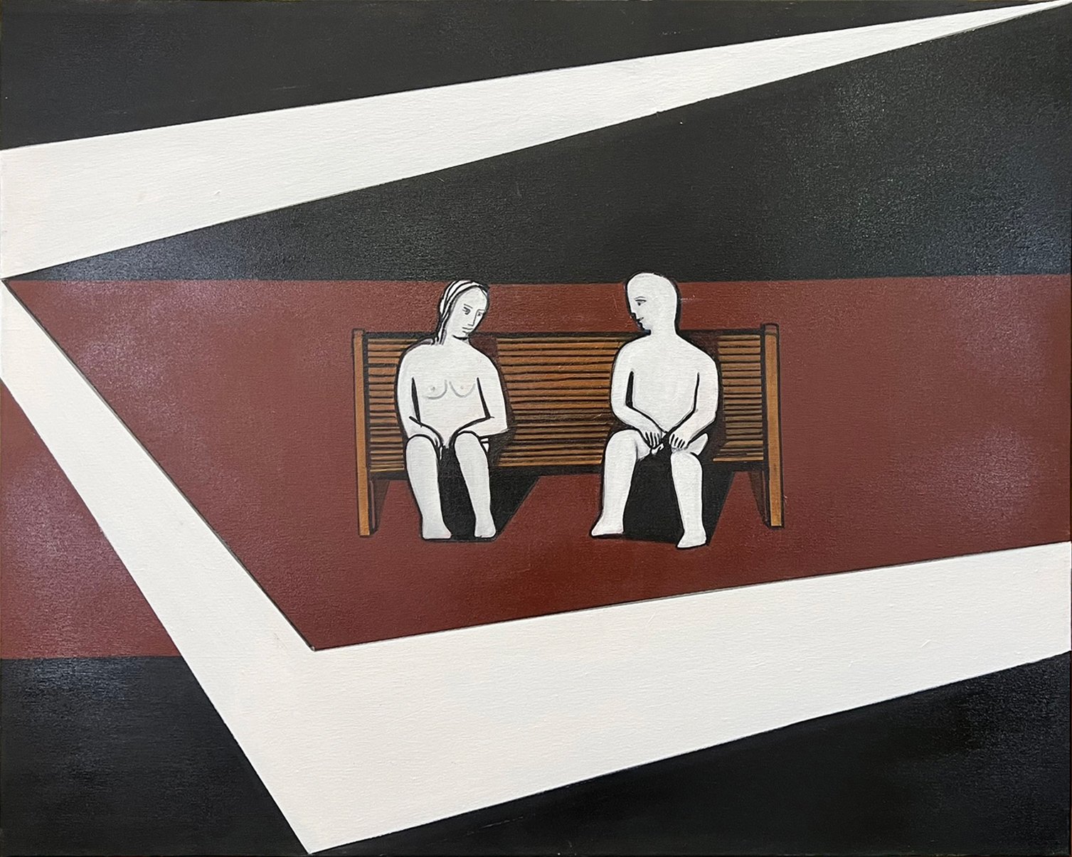 En uno de los instantes de Espera en el tiempo, en un parque cercano al estudio, una pareja dialoga.