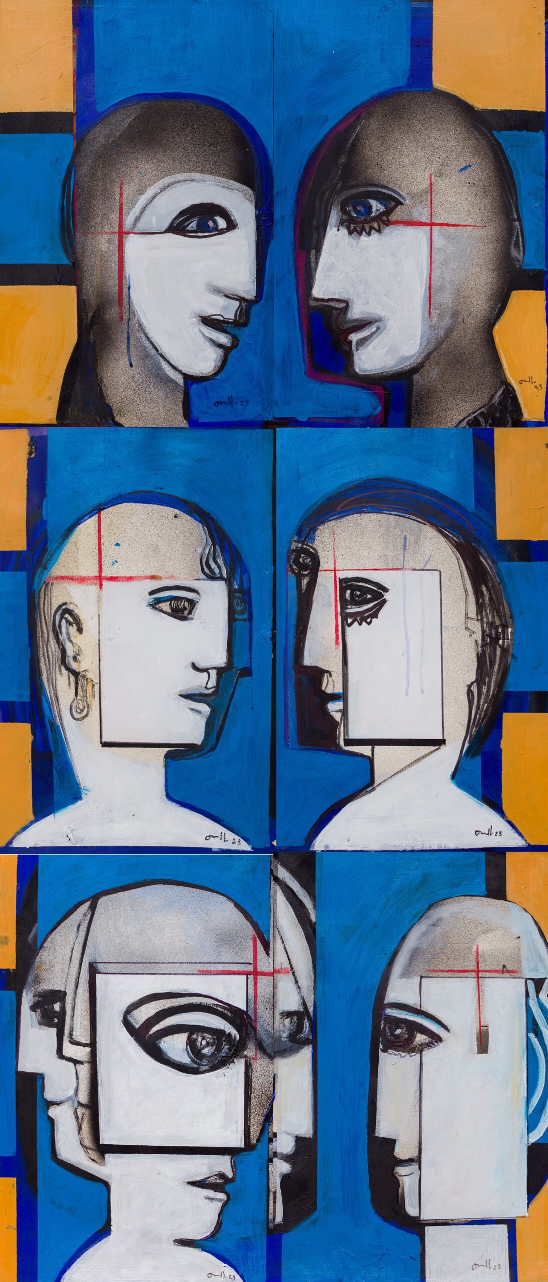 2024. En esta pieza, Orallo continúa su indagación sobre la condición humana, situando al espectador ante un diálogo abierto: el que se produce entre las formas, las miradas y los silencios que habitan el espacio del papel.